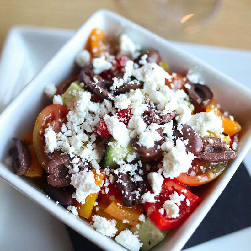 Grape tomatos, mixed peppers, red onion, mozzarella, feta and kalamata olives. Served with a vinaigrette base.