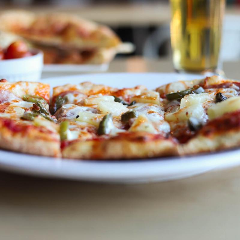 House-made marinara, ham, pineapple, jalapenos, mozzarella cheese with a drizzle of siracha honey.